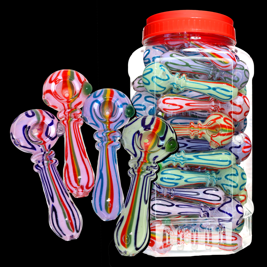 45 pcs – NEW JAR #28 Glass Hand Pipe (5 inches) Spoon $4.10 each