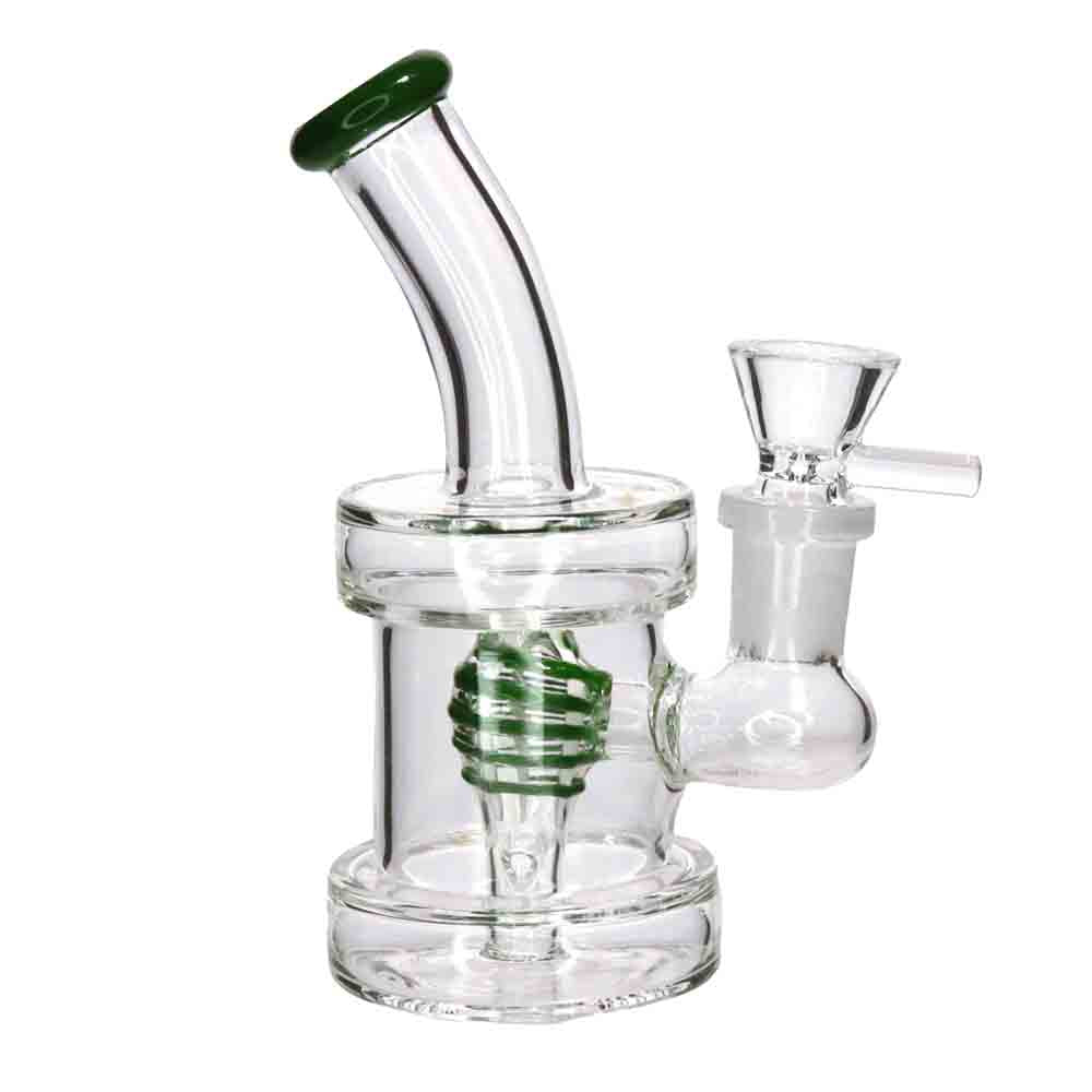 The 5-Inch Spiral Perc Mini Rig delivers smooth performance in a small, stylish form. Designed for smoke shops that want to stock affordable yet premium-quality glass, this mini rig is a customer favorite thanks to its vibrant spiral percolator and thick borosilicate construction.
