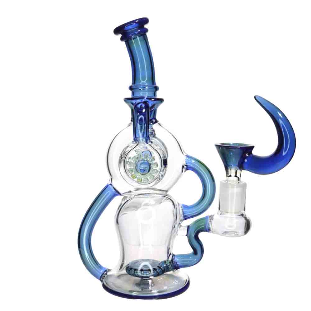 The 8-Inch Fancy Glass Design Water Pipe (Box Display) is a luxury centerpiece for any smoke shop or glass retailer. Handcrafted from premium heavy borosilicate, this water pipe combines functionality with visual artistry — featuring a curved horn-style handle, multi-tone color fade, and reinforced base.