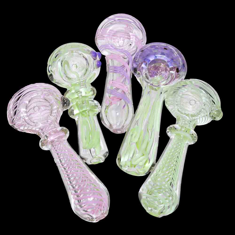 Crafted from high-quality borosilicate glass, these spoons are heat-resistant, durable, and built for smooth smoking performance. The 4.5-inch size provides a comfortable grip and larger bowl capacity, making them a preferred option for customers looking for a stylish yet functional piece.