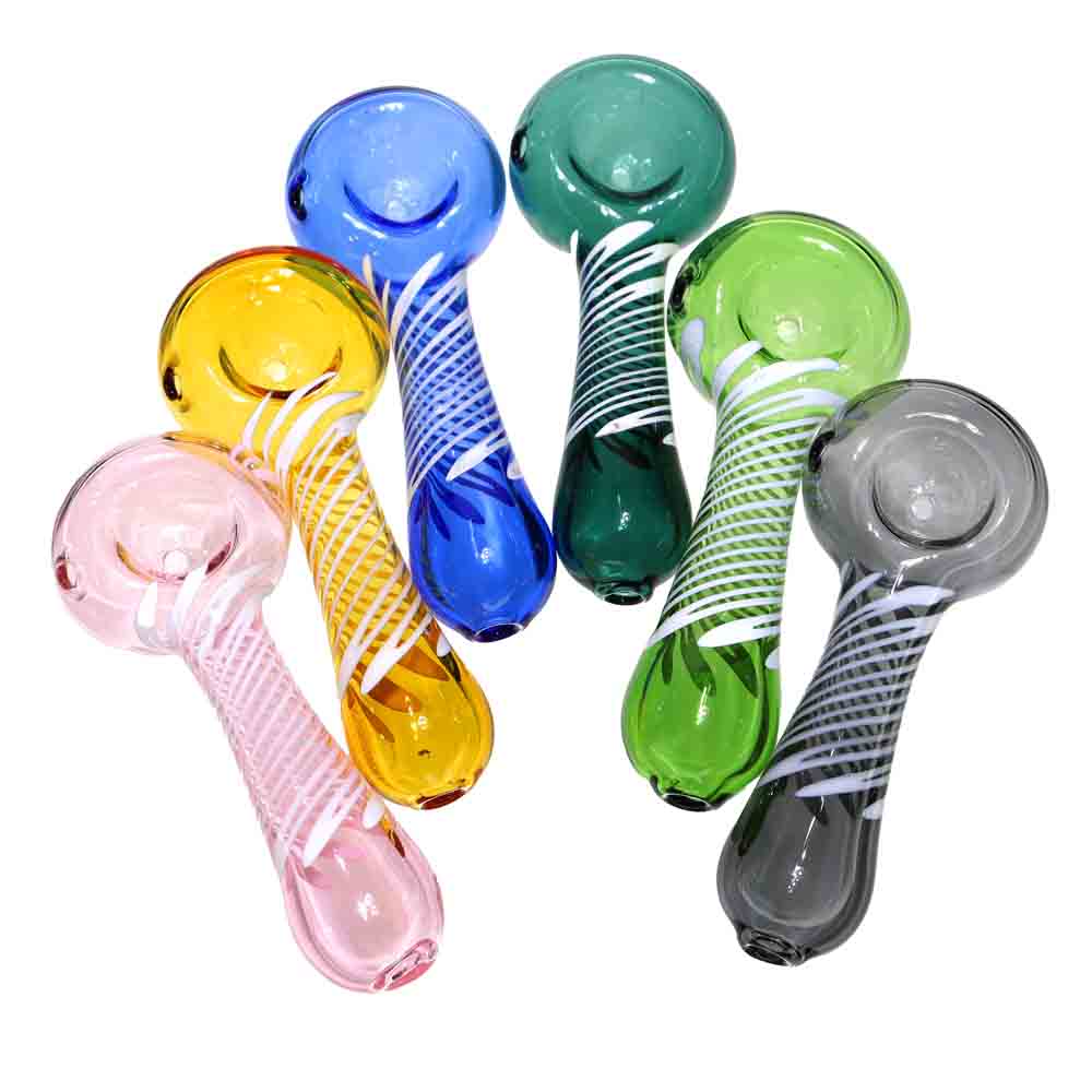 Crafted from high-quality borosilicate glass, each spoon pipe features bold, colorful designs with white swirl accents that catch customers’ attention. At 4 inches, these pipes offer the perfect balance between compact portability and a comfortable grip, making them popular for everyday use.